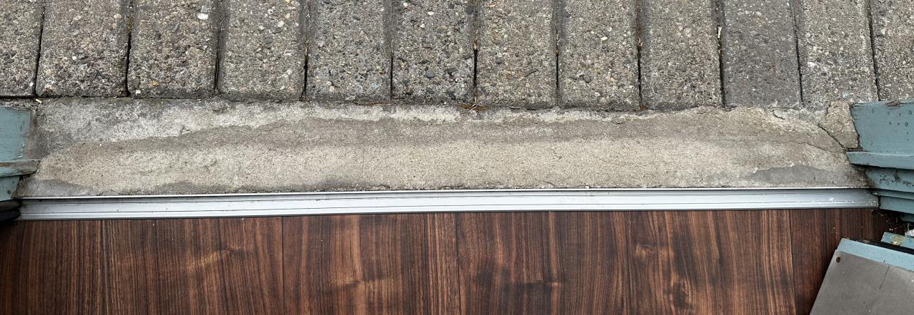 Hallo Zusammen, ich hoffe ich habe das richtige Thema ausgewählt. Der Hausmeister hat mir vor ein paar Jahren den Eingang mit etwas Zement "gegossen", um es schicker zu machen und den Höhenunterschied auszugleichen, leider ist sehr schnell ein Teil weggebrochen und das sieht natürlich nicht schön aus, außerdem habe ich immer den Dreck vom bröseln auf dem Laminat.  Ich habe mein ein Bild gemacht.