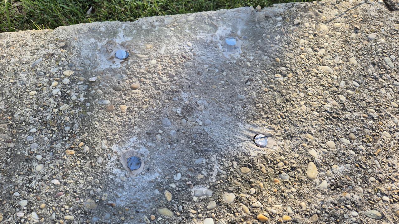 Die alten Gewindestangen wurden mit HiltiHit eingeklebt, bei den meisten Stangen sieht man zwischen Betonplatte und Gewindestange keinen Spalt, bei ein paar wenigen allerdings schon.
