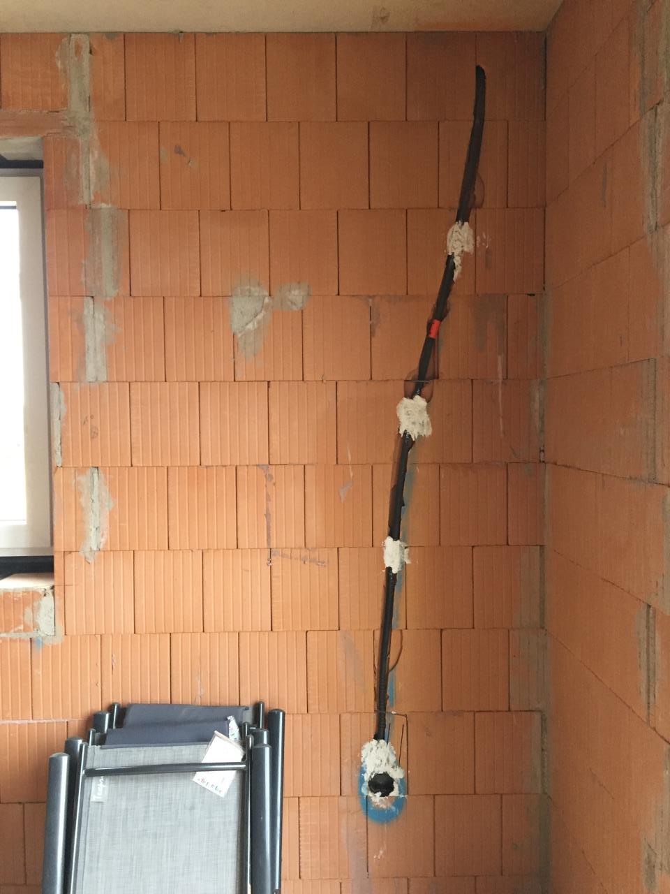 Ich habe mich nun bereits ein wenig durch das Internet gelesen und unterschiedliche Aussagen zu anderen Installationen gefunden die ähnlich aussehen, aber nicht so schlimm wie das hier. Von der Mauernutfräse haben die Spezialisten wohl noch nie etwas gehört.