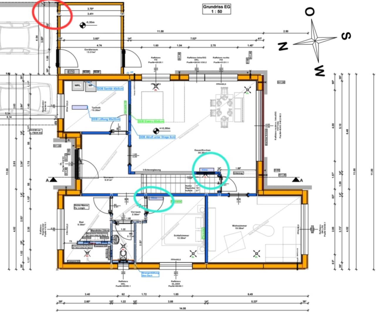 jo leider, das hätte man definitv besser planen können. Auch einige IG sind nicht optimal, meiner Erfahrung nach ist es sehr unangenehm, wenn einem die Klimaanlage anbläst (wie zb. in dem einen Zimmer im OG und auch im Eßbereich). |