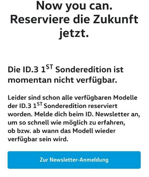 Der ID.3 ist schon ausreserviert ... falls den wer wollte. Bildquelle: https://cdn.volkswagen.at/media/Theme_Teaser_Abstract_Image_Component/46396-228185-image/dh-857-5a4acc/baf85a56/1557152408/neo-cutout-side.jpg https://www.volkswagen.at/elektroauto/id/id-familie/die-zukunft-steht-vor-der-tuer-der-id3-1st |