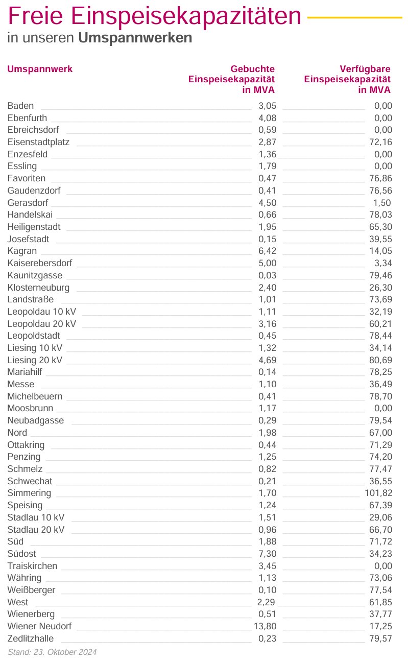 Dabei hätten die Wiener Umspannwerke noch so viel freie Einspeisekapazität |