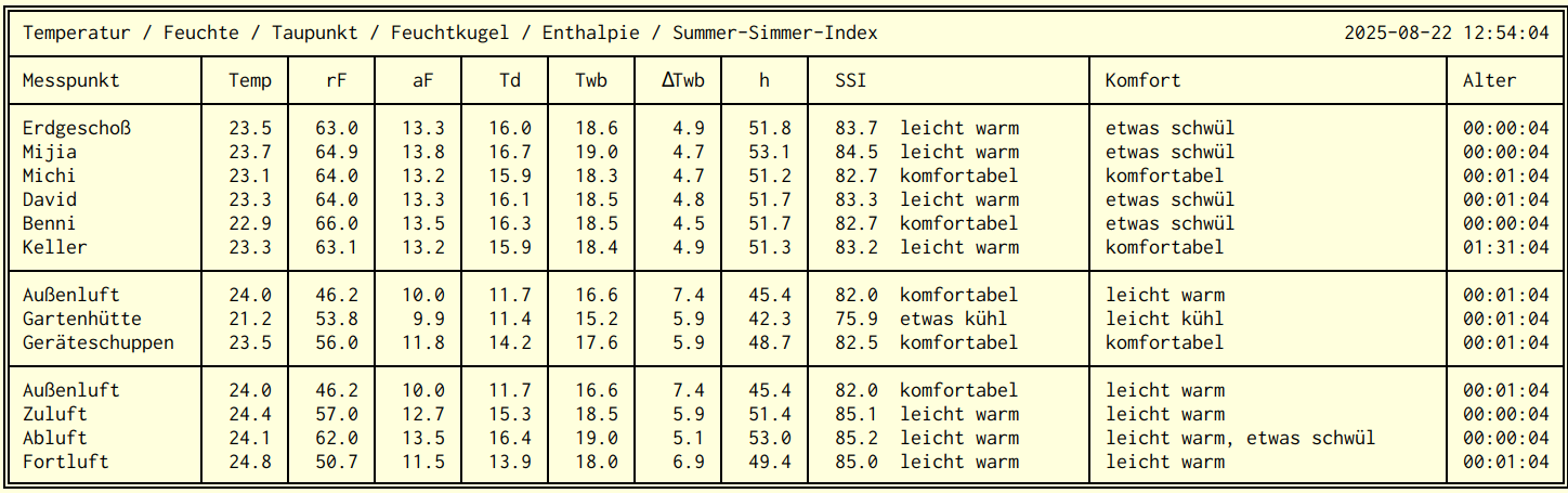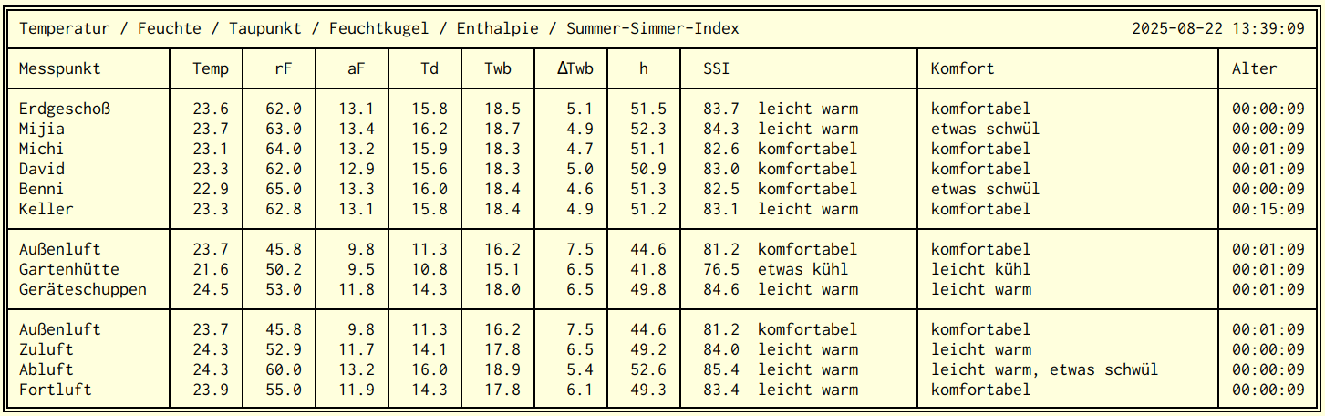 Nachdem ich dasselbe Setup habe, lese ich hier mal interessiert mit. Ich bin gespannt auf die Daten bei sehr heißen Außentemperaturen und größeren Feuchtedifferenzen. Ich vermute, du wirst die Messwerte noch länger im Auge behalten, oder? 😉 |