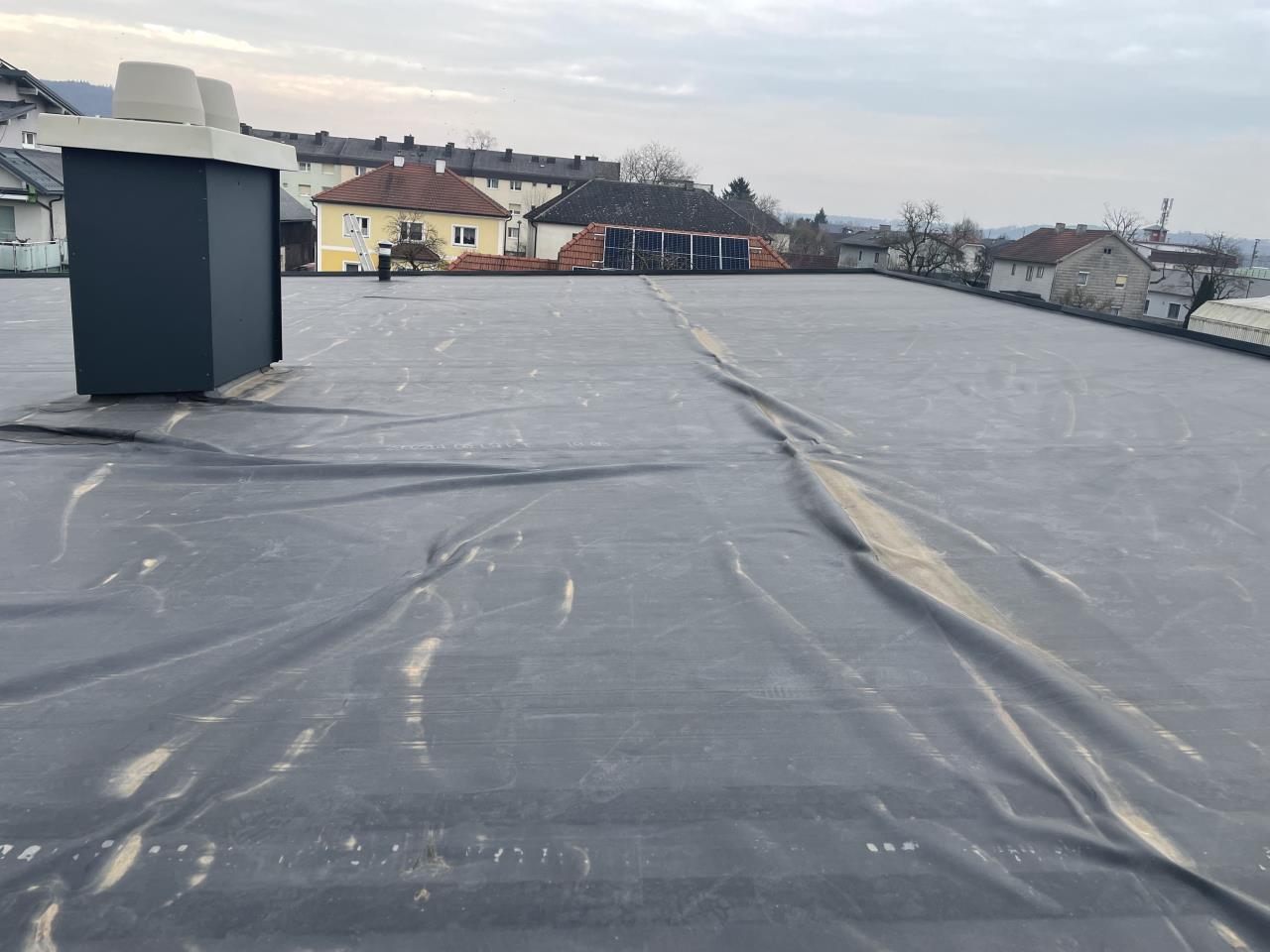 Ich wage das auch zu bezweifeln: 1. Du müsstest bei einem nördlich abfallendem Dach irrsinnig großen Reihenabstand haben, um die hinteren Module nicht zu verschatten, und 2. hast du dadurch (viel) weniger kWp kWp [kWpeak, Spitzenleistung] am Dach, was dir vor allem bei Bewölkung und Nebel extrem wehtut. Den bilanziellen Mehrertrag hast du mit Südanlage im Sommer, denn absolut gesehen produziert die PV im Kernwinter schon allein aufgrund der geringen Tageslänge nicht mal ⅒ des Jahresertrages. Aber bei diffusem Licht zählt jedes Wp am Dach, und da produzieren meine Nordmodule mit 25° Neigung gleich viel wie jene im Süden. Es fühlt sich für mich so an, als ob du hier dich mit deinem Eli schon festgelegt hast, aber bitte überdenke nochmal diese Entscheidung. Denn zusätzlich zu weniger Ertrag an den Tagesrandzeiten und schlechtem Wetter (ich glaub sogar auch insgesamt) kostet die notwendige Ballastierung der aufgeständerten Variante auch viel mehr Aufwand als bei einer O/W Variante (sturmanfälliger!) - und wenn der Eli dazu auch noch mein Flachdach durchlöchern wollte, dann wäre bei mir sowieso schon der Ofen aus. Zum Thema: Ja, bei solchen Faltenwürfe beim EPDM würde ich auch nochmal den Dachdecker antanzen lassen. Und eine unabhängige Dichtheitsprobe des Daches beauftragen lassen (allerdings noch keine Erfahrung wie gut diese funktioniert..).