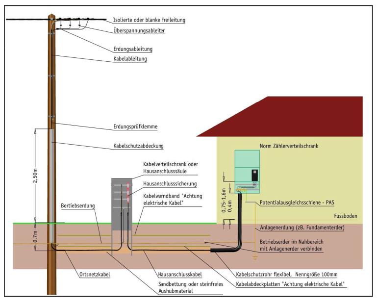 Verlegt und auch gestellt wird nach Absprache mit dem Netzbetreiber ein "E-AYY-J 4x25mm²" mit ca. 20m sowie ein "35mm² Cu Seil" mit ca. 12m (sofern richtig verstanden um direkt einen Anlagenerder mitzuverlegen).