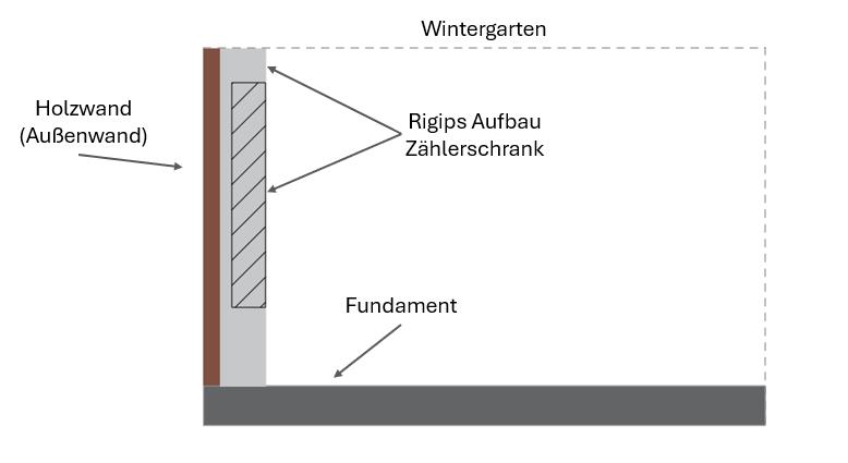 Die eigentliche Frage bezieht sich jedoch auf die Einleitung des Kabels in das Gartenhaus, der neue Zählerschrank wird aufgrund von Platzmangel im Wintergarten/Vorraum sitzen, der Plan ist es auf die bestehende Holzwand/Außenwand einen Holz/Rigips Aufbau zu setzen in der der Unterputz Zählerkasten dann versenkt wird.