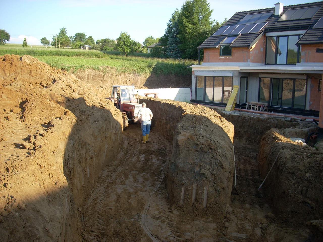 wir haben 3 Künetten gegraben. Insgesamt gut 125 Meter mit 2 Meter Breite und 1,5 Meter Tiefe. Hier haben wir das 500 lfm Kolletorset von IDM mit 5 Kreisen eingesandet. Bei 2 Künetten also 2x Vorlauf und 2x Rücklauf, bei 1 Künette 1 Vorlauf und 1x Rücklauf mit 70cm Abstand. Rohrmaterial, Durchmesser und Wanddicke weiss ich nicht mehr. Eine ünnötig starke Wp gibt es für mich nicht. Bei aktiver Sonnenenergienutzung muss die verbaute Wp in der Lage sein, in den wenigen Stunden mit Sonne die Energie für einen ganzen Tag in das Haus zu bringen. Hier muss der Kollektor in kurzer Zeit viel Energie hergeben, erholen kann er sich in der Nacht. Welchen Nachteil sollte das haben, wenn Platz vorhanden ist? In der Hausbauphase spielt es keine Rolle, ob der Bagger 1 Stunde länger gräbt. |