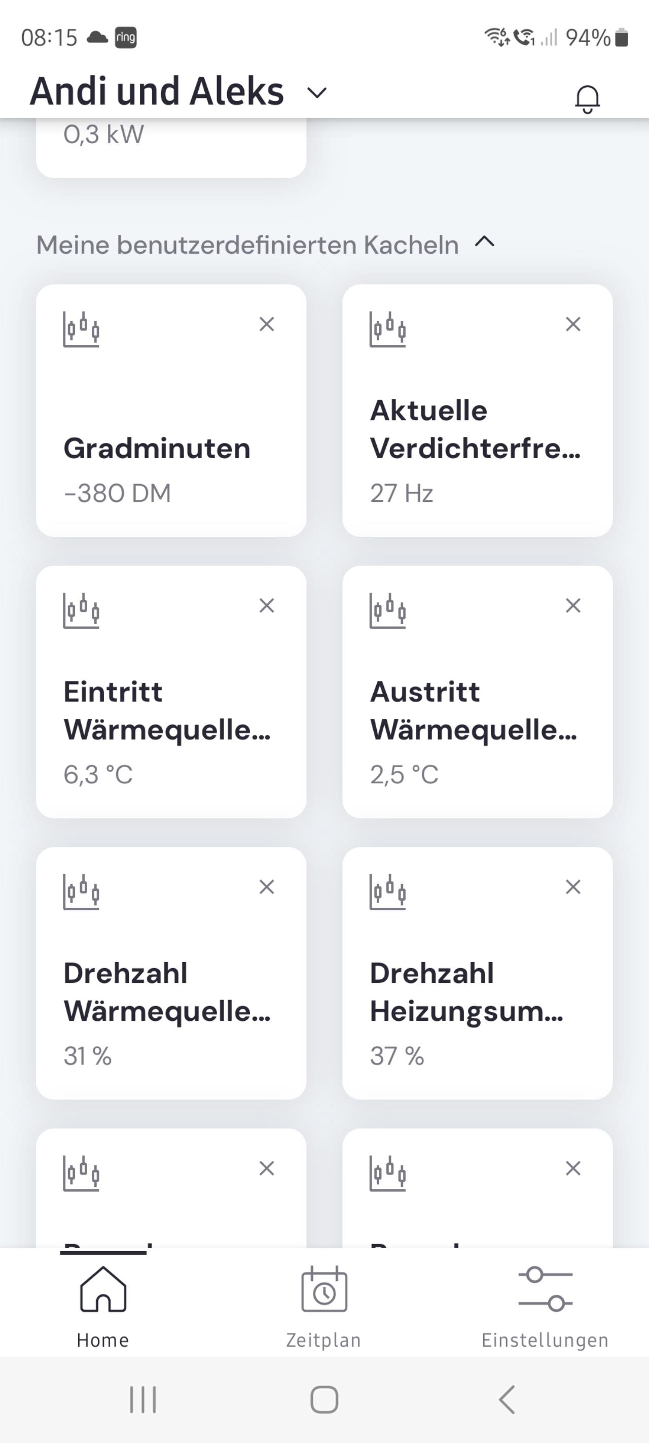 Meine Leidenskollegen 😅 Bin derzeit bei Warmwasser Bereitung auf -0,2°C Temp ein. Und -3,2°C Temp aus. Wenn die Sonne mal auf meinen ostseitigen Temp Fühler brennt und nur mehr auf 20Hz fährt, dann geht er aber auch wieder rauf auf +0,5°C Tem ein. |