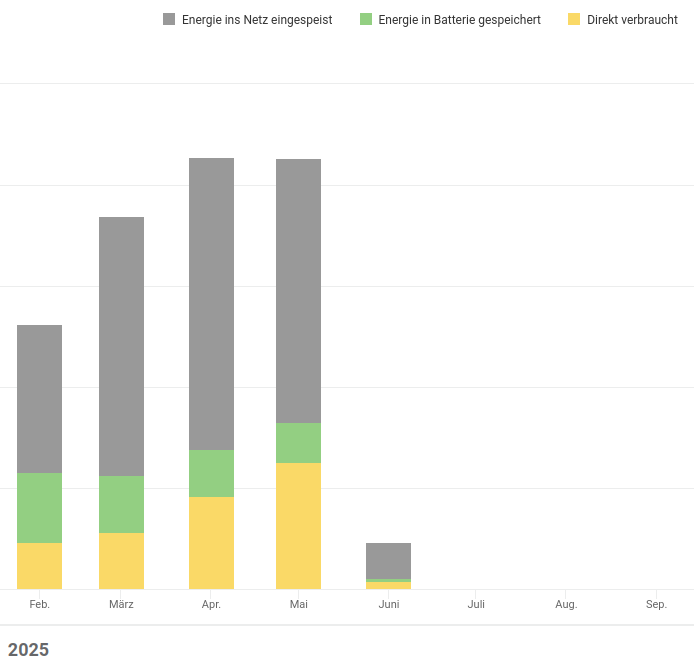 Wir selbst hatten im Mai einen Verbrauch von 1042 kWh und einen Restnetzbezug von 2 kWh (99,8% Eigendeckung)