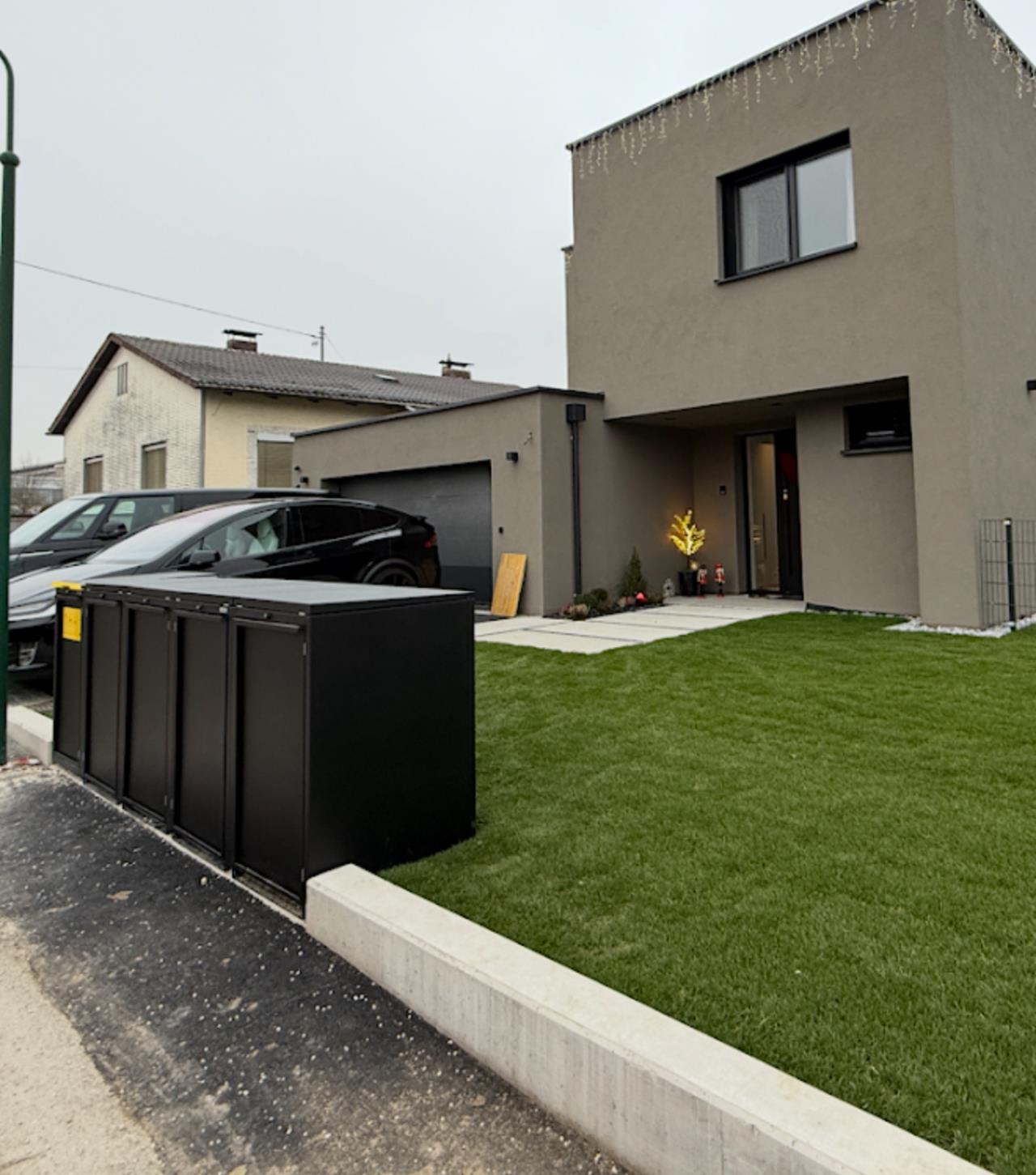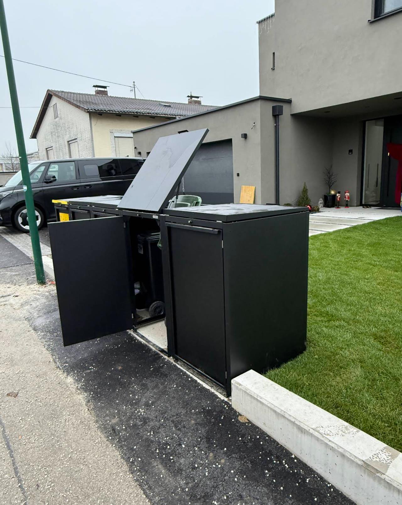 Nun ist es soweit – bzw. eigentlich schon seit Oktober letzten Jahres. Ich habe mir damals länger verschiedene Lösungen angeschaut und mich dann für die Mülltonnenbox Stahlfred von BIO Stefan mit einer Paketbox entschieden: https://biostefan.at/collections/muelltonnenbox Das Ganze nutze ich bei mir sogar als Zaunersatz – war anfangs eher ein Versuch, hat sich aber ehrlich gesagt besser bewährt als gedacht. ![]() Die Deckel öffne ich von der Gartenseite – ich muss also nicht extra auf die Straße gehen, um Müll einzuwerfen. Die Türen hingegen öffne ich straßenseitig, damit ich die Tonnen bequem zur Abholung rausstellen kann. Genau diese Kombination war für mich eigentlich der ausschlaggebende Punkt. ![]() ![]() Der Aufbau inklusive Auspacken war in etwa 3 Stunden erledigt. Es sind zwar einige Teile, aber wenn man sich kurz reindenkt, geht’s gut. ![]() Wir haben alles per Hand angezogen, um die Gewinde nicht unnötig zu stressen – hat sich im Nachhinein als sinnvoll erwiesen. Man sieht auch gut wieviel Verpackung hier verwendet wurde, damit alles heil ankommt. ![]() Was ich auch positiv finde: das leichte Gefälle der Deckel. Bei Regen bleibt kaum Wasser stehen, das läuft wirklich sauber ab – hatte ich so ehrlich gesagt nicht erwartet. ![]() Ich habe mich für die 4×240 L Variante entschieden. In der Praxis ist es bei mir aber gemischt: nur die Altpapiertonne hat 240 L, die anderen sind kleiner (90/120 L). Den restlichen Platz nutze ich für gelbe Säcke – da gehen locker 5–6 voll gefüllte rein, was echt praktisch ist. ![]() |