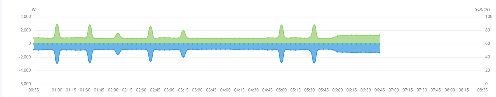 Landei schrieb: Tatsächlich, als es mit den Temperaturen Richtung -6°C (laut Pichler APP) runter ging, stieg plötzlich der Strombezug der KWL KWL [Kontrollierte Wohnraumlüftung] von 38W auf --> 556W. Allerdings nur ein paar Minuten. Das Spiel ging die ganze Nacht so.