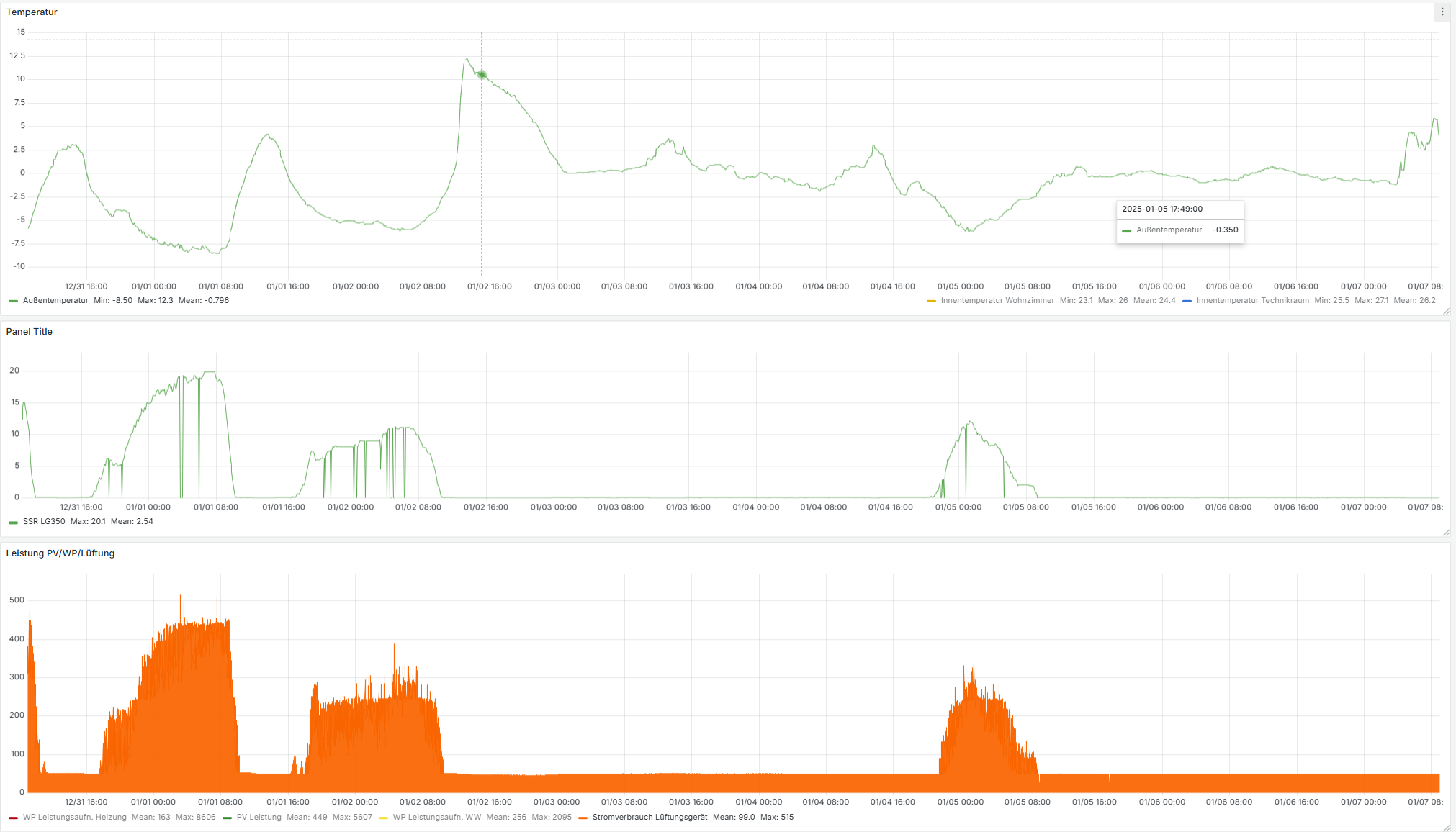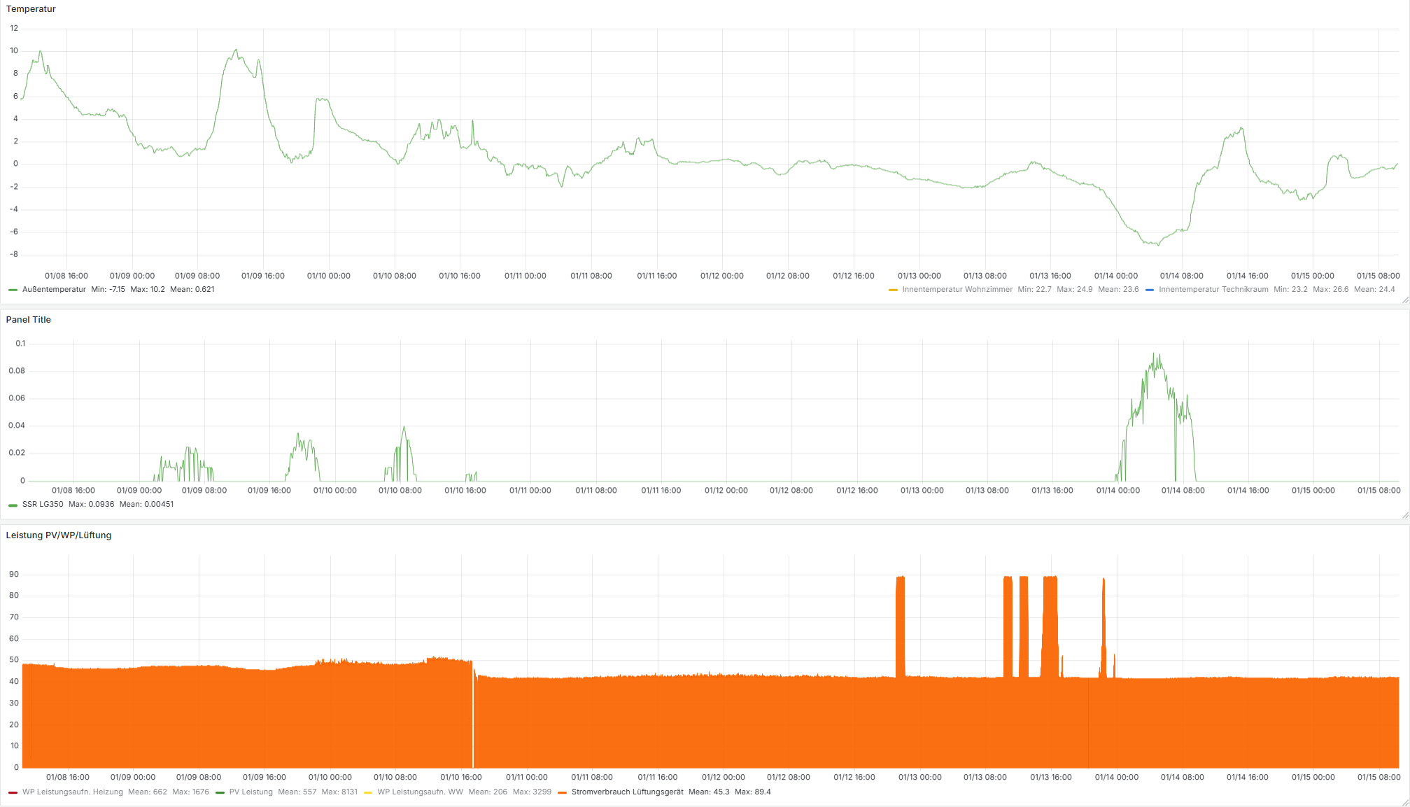 Diese Nacht war bislang die kälteste in diesem Winter. Zumindest bei uns. Die Pichler läuft nachts auf Stufe 2 (190m³/h). Da war ich gespannt ob das VHR des LG350 anspringt.