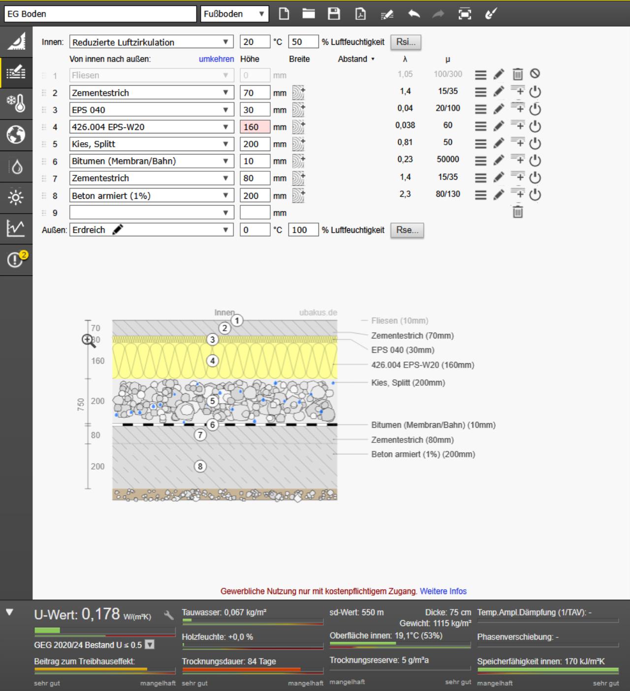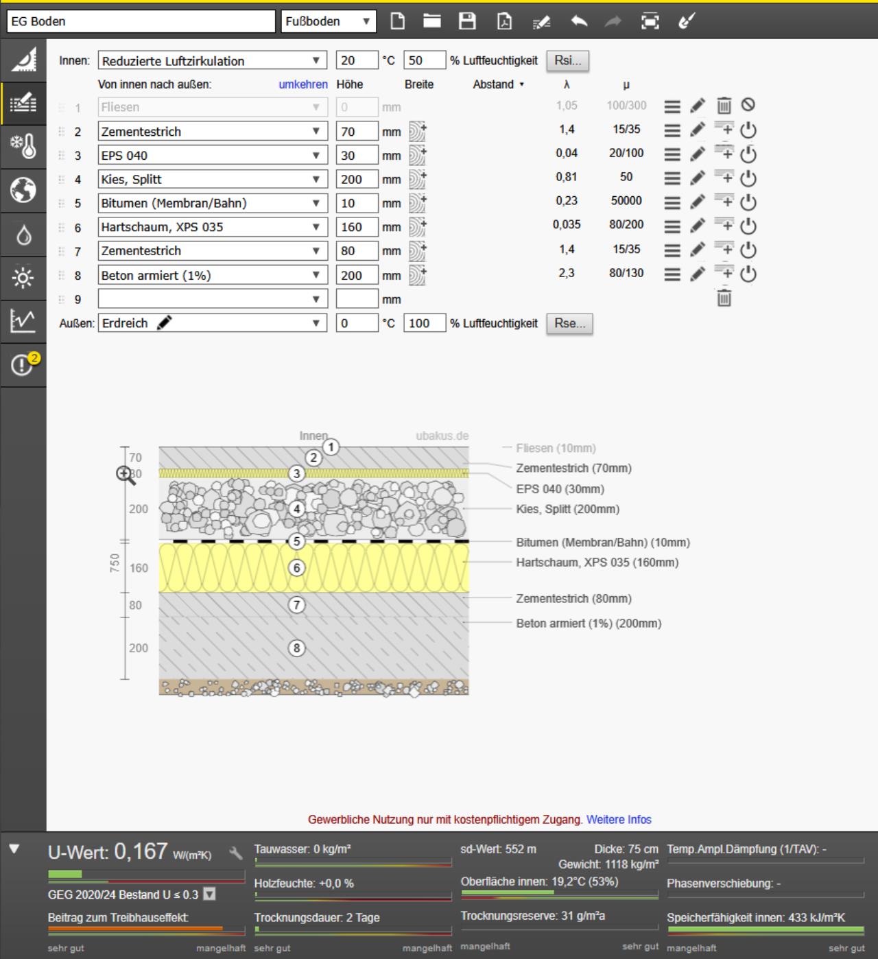Der Boden in unserem EG wurde allerdings genau so umgesetzt, wir er ihn geplant hat und nachdem mir jemand vor einiger Zeit Ubakus empfohlen hat, habe ich den Aufbau dort einmal eingegeben mit folgendem Ergebnis: