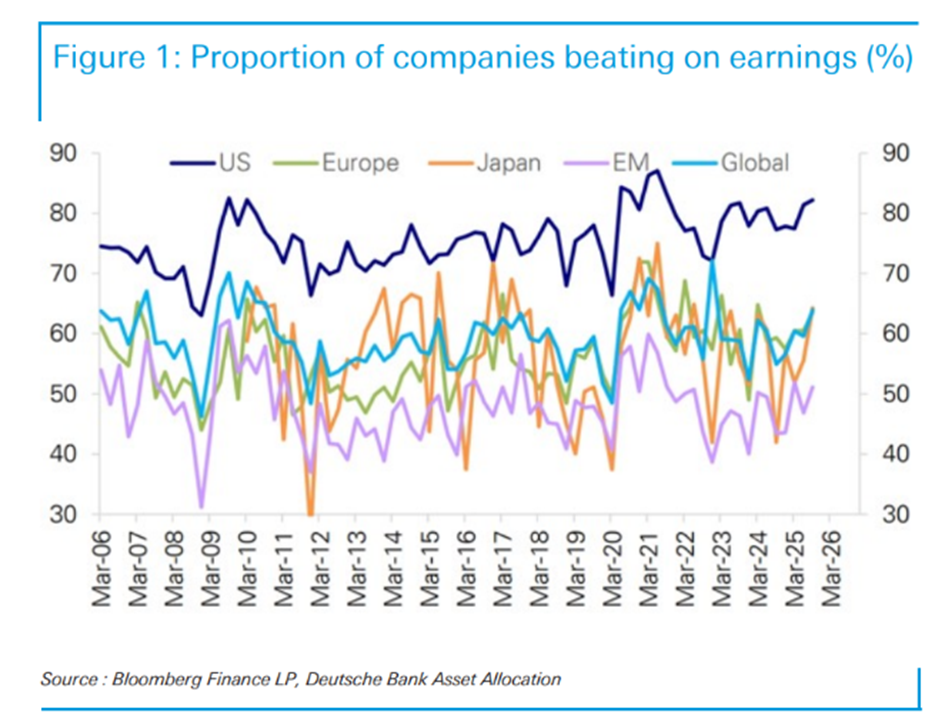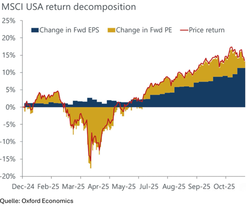 das ist halt die Frage. In der aktuellen Berichtssaison über das 3. Quartal übertrifft der überwiegende Teil der Unternehmen die (zum Teil sehr hohen) Gewinnerwartungen - mit einer Steigerung des Gewinnwachstums von durchschnittlich 11,3% weltweit (dem besten Ergebnis seit 3 Jahren): In den USA haben beispielsweise mehr als 80% der S&P 500 Unternehmen die Analystenschätzungen übertroffen (im Marktdurchschnitt wurden die Erwartungen um 10% übertroffen - die Gesamtgewinne stiegen um 10% gegenüber dem Vorjahr): |