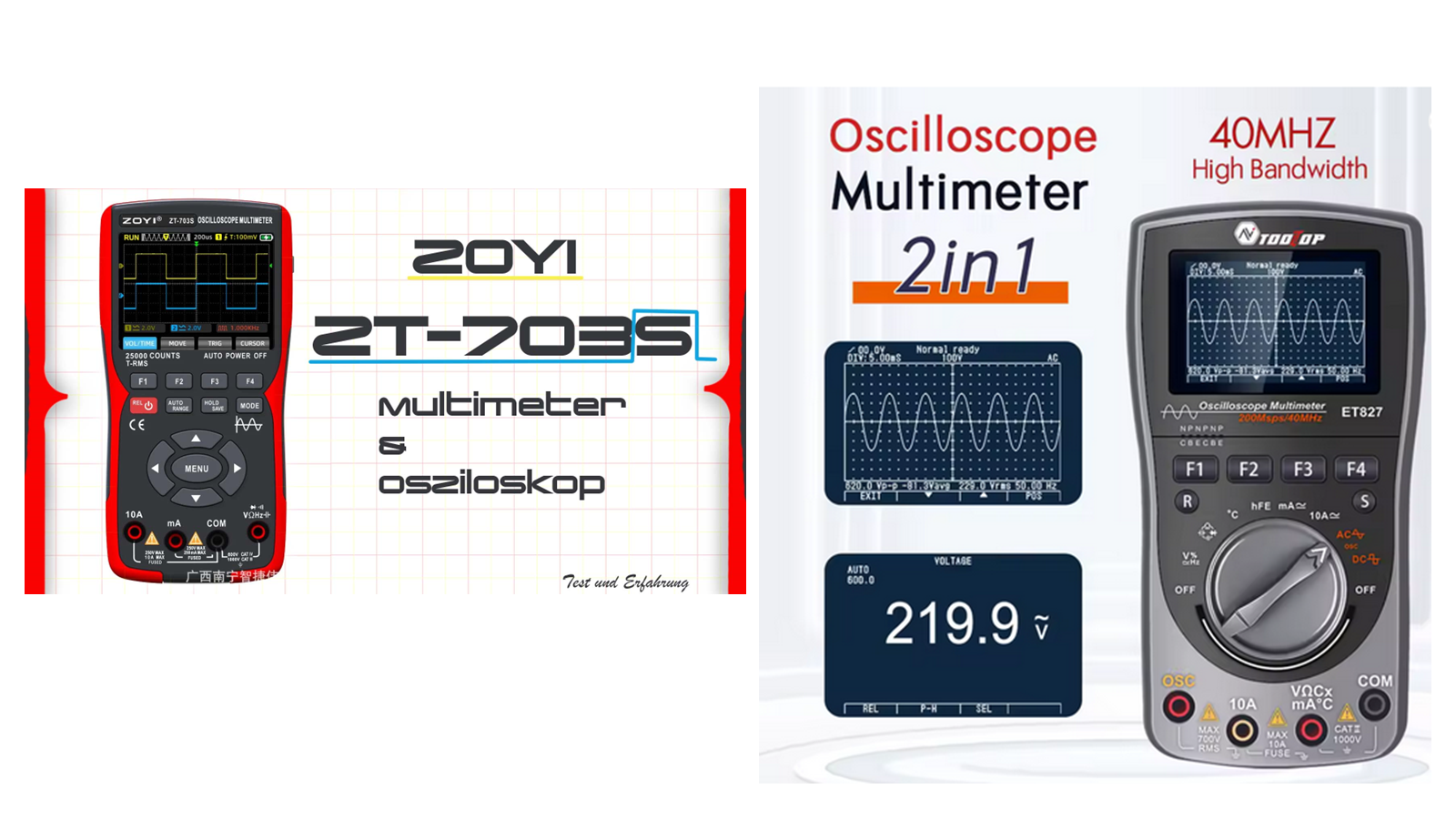 Solch günstige Mulitmeter mit Oszilloskopfunktion gehören sowieso zur Grundausstattung für einen Häuslbesitzer😀. Habe unter anderem diese zwei auf dem Bild.  Vorteil ist, dass diese potenzialfrei sind. Beim ET827 braucht man keinen Tastkopf. Bei den Netzstrombetriebenen muss man immer im Hinterkopf haben, dass der Ground vom Tastkopf immer mit dem Schutzleiter verbunden ist. Das kann bei bestimmten Messungen böse Folgen haben.