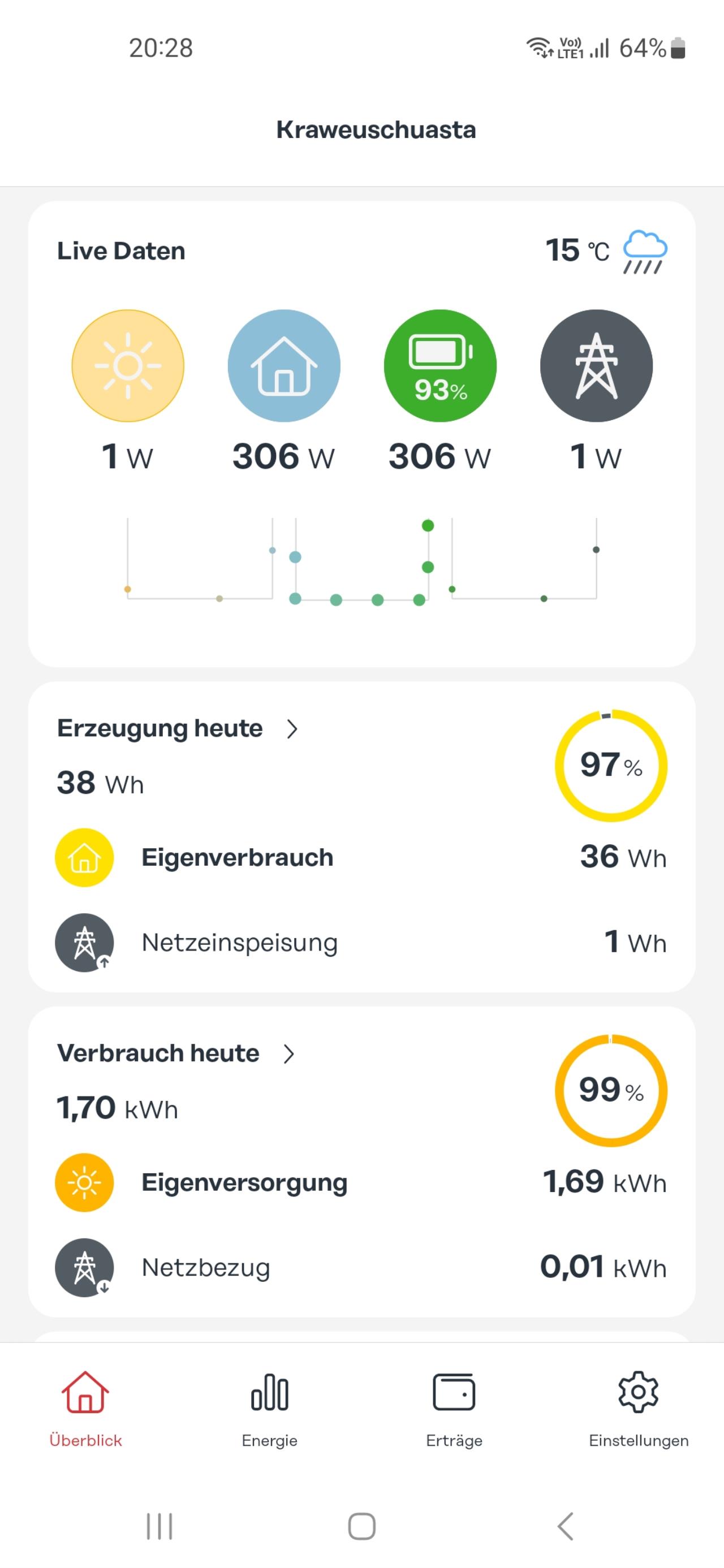Gefühlt sind solche Fehler bei Solarweb alle 2 Woche. Dann fehlt wieder ein Wechselrichter, die Leistung wird dann dem Verbrauch zugeordnet und der Überschuss wird ins Netz eingespeist etc. Am nächsten Tag sollte dann wieder alles Snychronisiert sein, wie gestern auch. Heute sagt die App auch erst eine Erzeugung von 2Wh an, obwohl der Speicher bereits um 40% geladen wurde.