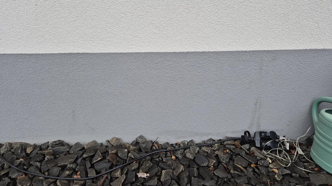 Im Bereich der Terrasse hat sich relativ bald (1,5Jahre) ein Riss (bzw. mehrere feine im Bereich der Plattenstöße) gebildet welcher von der Fassadenfirma saniert wurde ("zugeschmiert" und der Sockel neu gestrichen wie man an den unterschiedlichen Sockelfarbtönen erkennen kann), hat aber nicht lange gehalten und ist seit dem optisch nicht wirklich ansprechend (aktuelles Foto). Uns wars mehr oder weniger egal, die Diskussion mit der Fassadenfirma war mir auch zu mühsam da diese sich ja auf meine geklebten XPS Platten rausreden konnte: