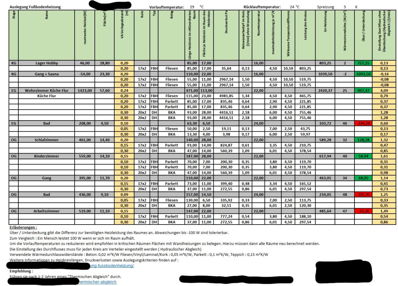 Ich teile hier mal einen Auszug der Ergebnisse zur allgemeinen Diskussion, vielleicht überlegt auch der eine oder andere so eine Berechnung durchführen zu lassen. Es soll hier weder Werbung noch ein Schlechtreden des Ingenieurbüros sein, welches die Berechnungen erstellt hat - die Ergebnisse sind anonymisiert und sollen einer objektiven Diskussionsgrundlage dienen. Vielleicht fällt euch auch der eine oder andere Unfug hier auf, bevor ich mich an die Installation mache. (einen Teil der BKA BKA [Betonkernaktivierung] verlege ich in KW2).