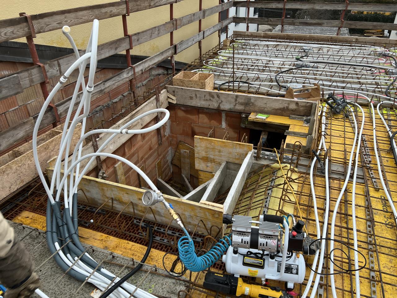 Nachdem ich von der EG-Decke schon Erfahrung sammeln konnte ging die Verlegung der OG BKA BKA [Betonkernaktivierung] rucki-zucki. Ablauf war wieder der gleiche.