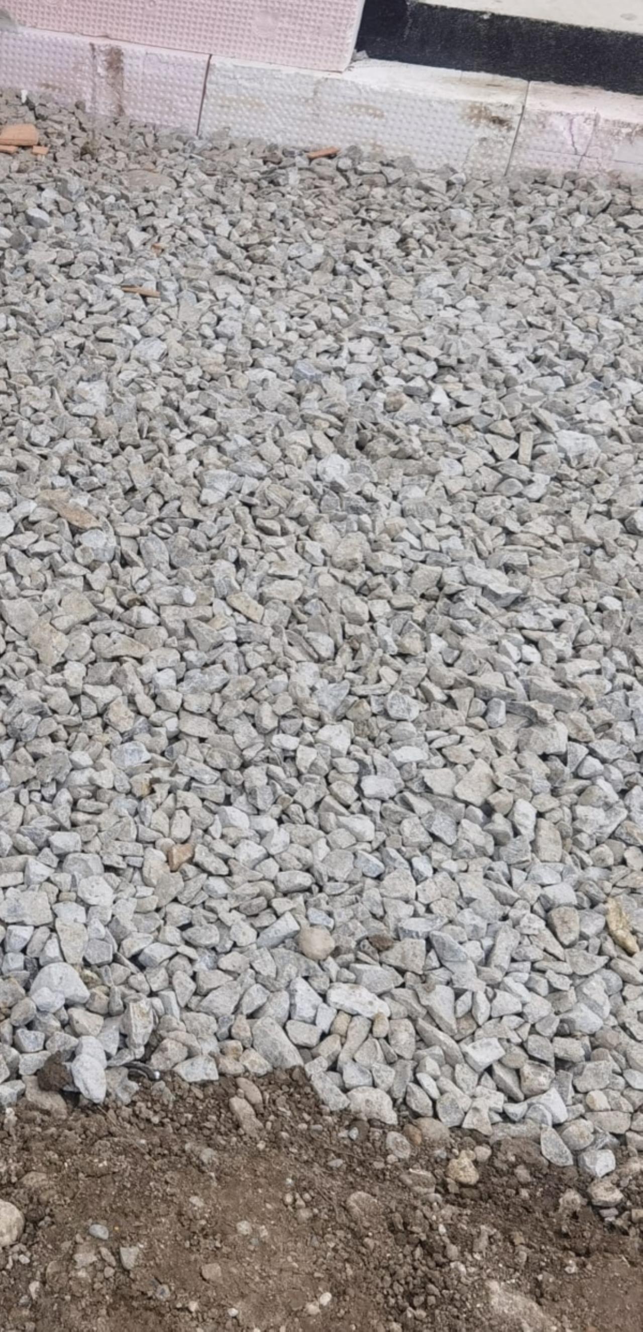 Status Quo ist dass die Baufirma ca 30cm Aufbau mit diesen Steinen (Split 16/32?) gemacht hat (siehe Foto). Aktuell fehlen noch ca 30cm bis zum fertigen Niveau.