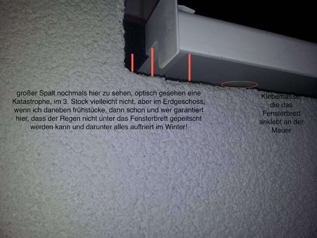 also grundsätzlich MUSS ja bei so einer nachträglichen montage (wie auf den fotos) unter der fensterbank eine 2te dichtebene ausgeführt sein, zB mit dichtschlämme.