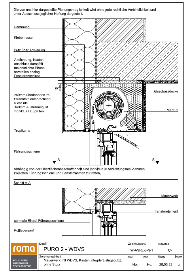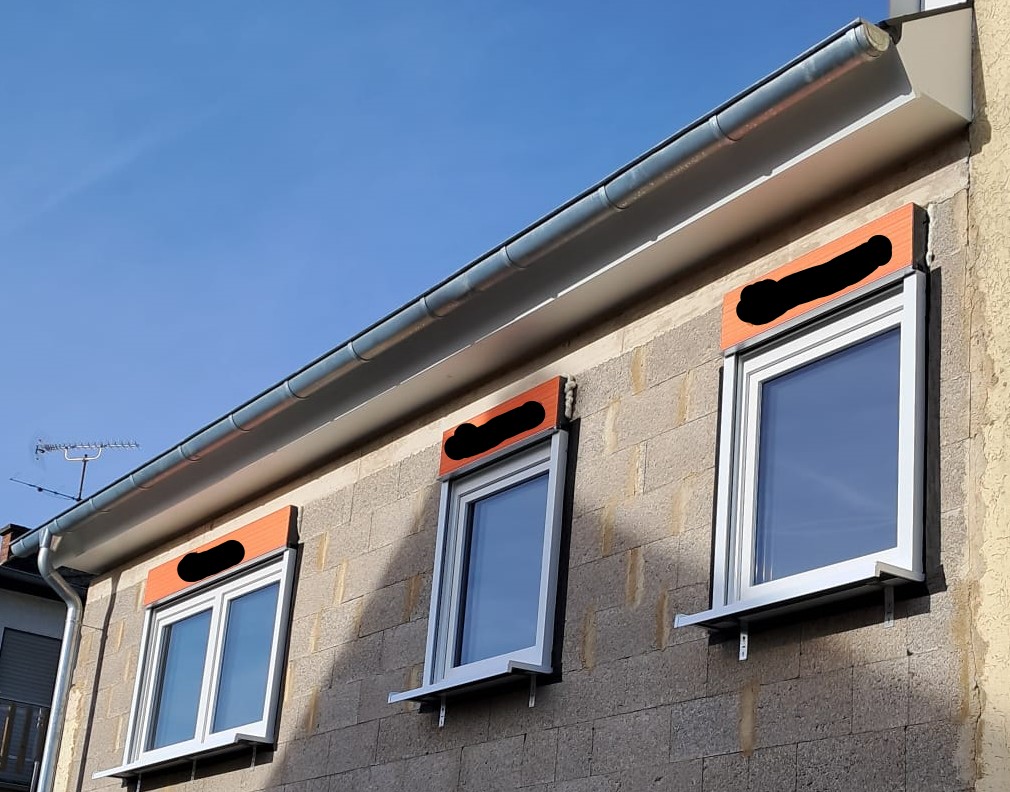 Ja genau das ganze ist das Aufsatzelement ROMA System: PURO 2. Die Bilder bisher sind alle von innen gemacht worden. Außen ragt das System nur einige Zentimeter raus und wird dann wie in der Systemskizze überdämmt. Jetzt sitzt das Fenster, auf dem der Rolladenkasten montiert ist, außen bündig mit dem Mauerwerk und die Führungsschienen der Rollade sitzten direkt darauf, wie auch bei der Detailzeichnung des Herstellers. Warum auch immer passt aber jetzt innen der Putzanschluss und dieser ist in die Mauer zurückversetzt, wie auf den ersten Bildern zu sehen. Ich verstehe ehrlich gesagt gar nicht, wie das passieren kann. Aber meiner Ansicht nach ist die Position des Fensters und damit auch des Kastens primär von der Außenseite vorgegeben, ein rückversetzten in die Mauer hinein, damit es innen passt, wäre fachlich falsch gewesen. Ja der Innenputzer muss dann halt was draufkleben, Leisten setzten und bisschen nacharbeiten, mehr ist es jetzt eigentlich nicht, aber ich denke, dass diese Kosten vom Fensterbauer getragen werden müssen. |