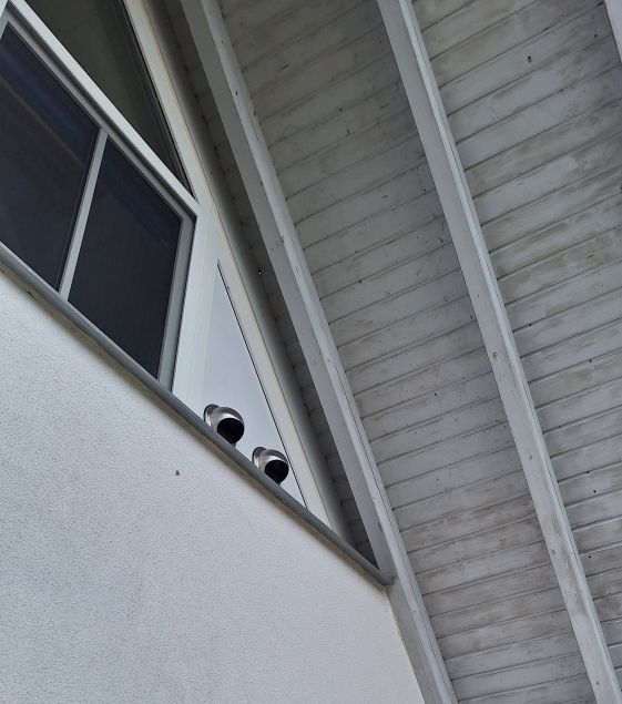 Du musst dir vorstellen dieses kleine Fenster ist in einer 60cm großen Nische zwischen Carport Verbau und Hauskante. Vor dem Fenster mit Abstand ca. 50cm würde das Außengerät hängend montiert ans Carport. Dann bleiben noch max. 30cm die man dann vom Fenster noch sieht da das Außengerät die Sicht nimmt. Da muss man mal genau schauen das man hier die Leitungen sieht. Und wenns nicht gefällt Holtverkleidung drüber und fertig.