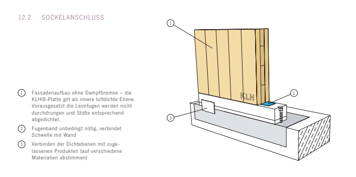 Eigentlich gibt es von allen CLT-Herstellern Bauteilkataloge mit solchen Details. Bei z.B. KLH ist auch eine Lösung ohne innenliegenden Dichtband drinnen. Außen kommts ralt immer noch mehr aufs verwendete Produkt und die Ausführung an. Deshalb würde ich innen auch verkleben. Vllt. dem BM anbieten es selbst zu machen und er soll die paar Rollen Klebeband stellen. Die zusätzliche Sicherheit sollte auch in seinem Interesse sein (Gewährleistung). ![]() |