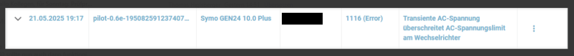 Der Wechselrichter loggt beim Fehlerereignis folgendes mit: