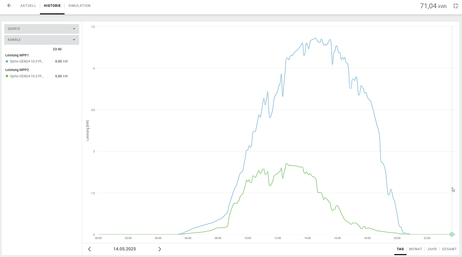 Die Panelfelder dürften relativ ungleich verteilt sein. An einem schönen Tag liefert ein MPP die dreifache Leistung vom zweiten. Ist das so ok ?