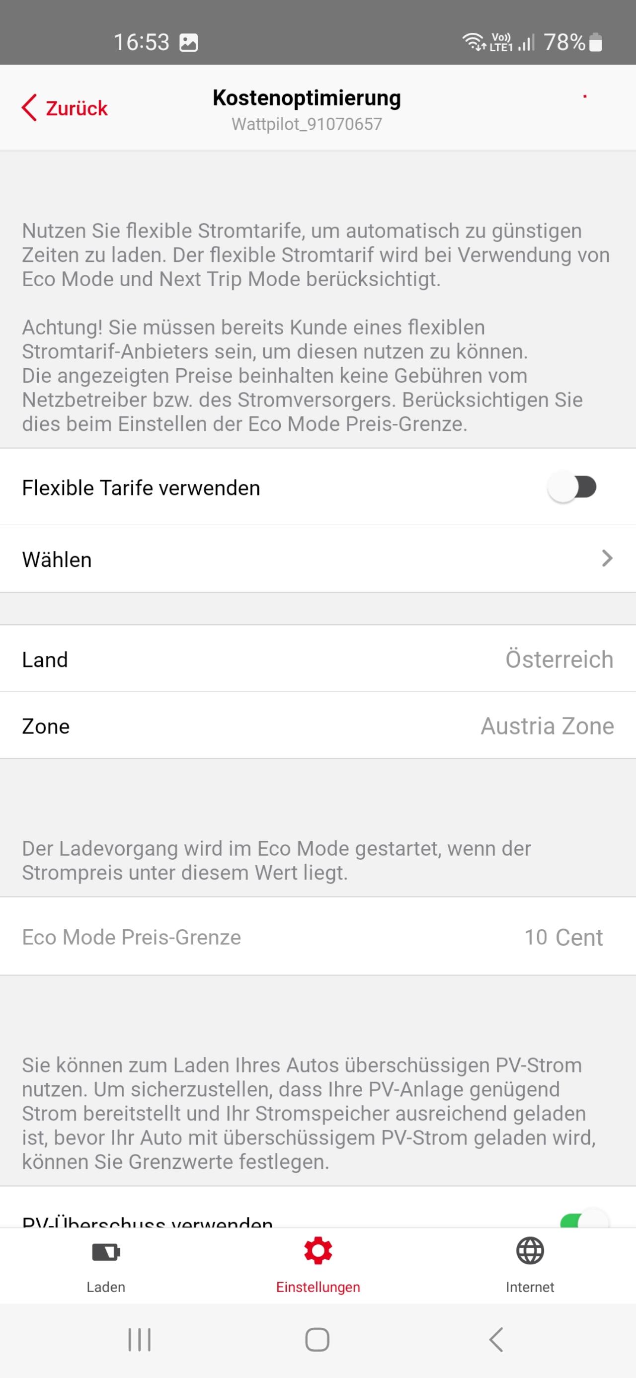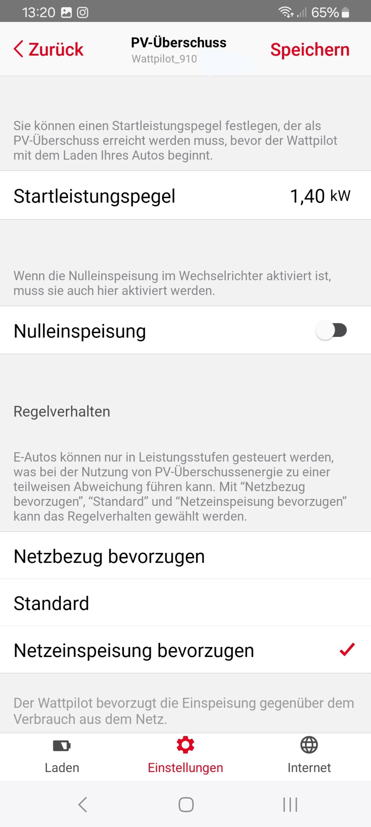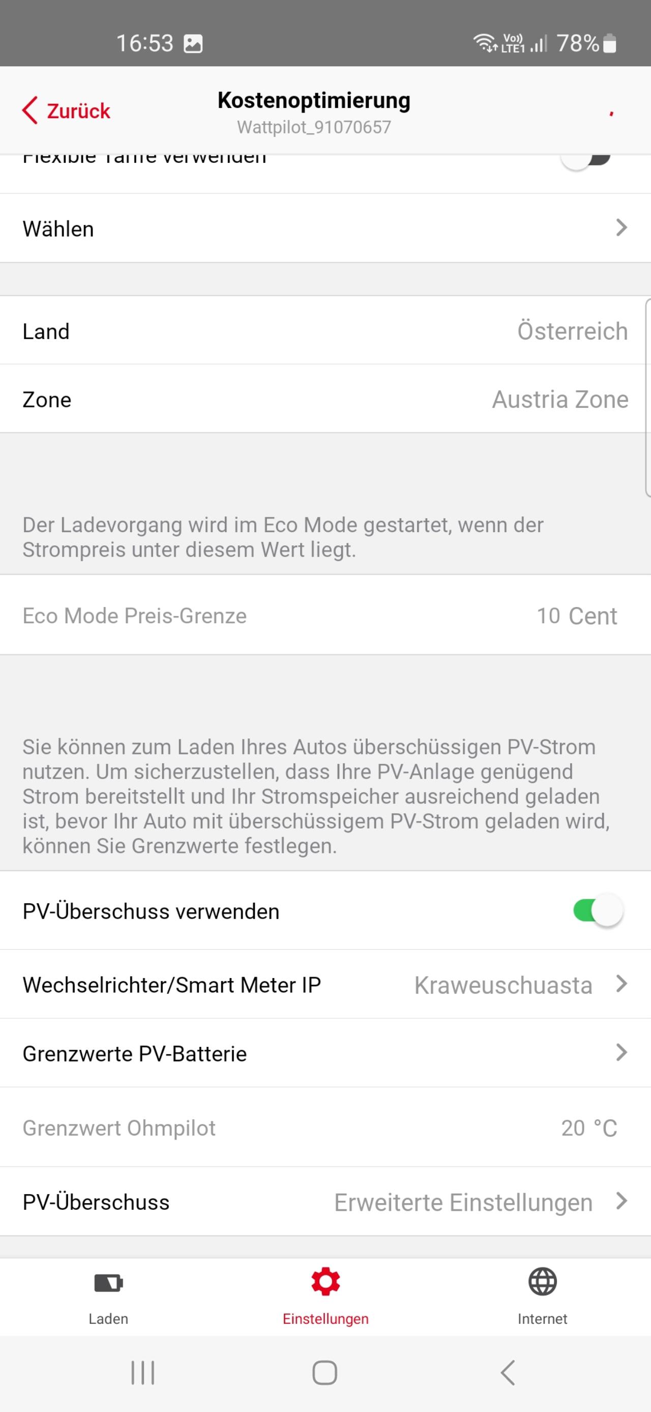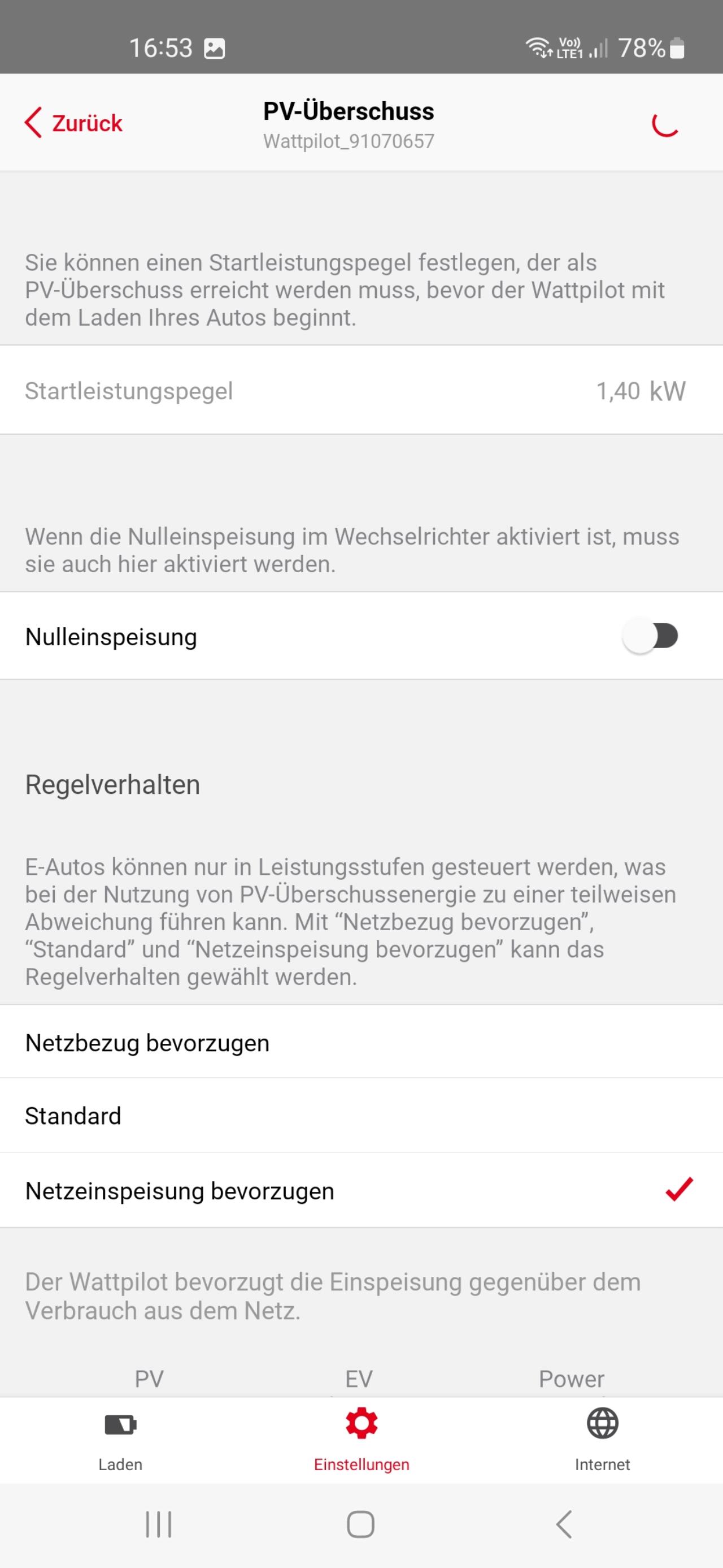 Anbei meine Einstellungen wodurch das PV-Überschussladen perfekt funktioniert! Lg