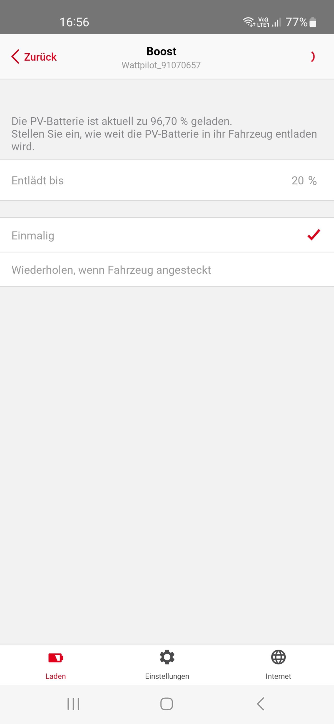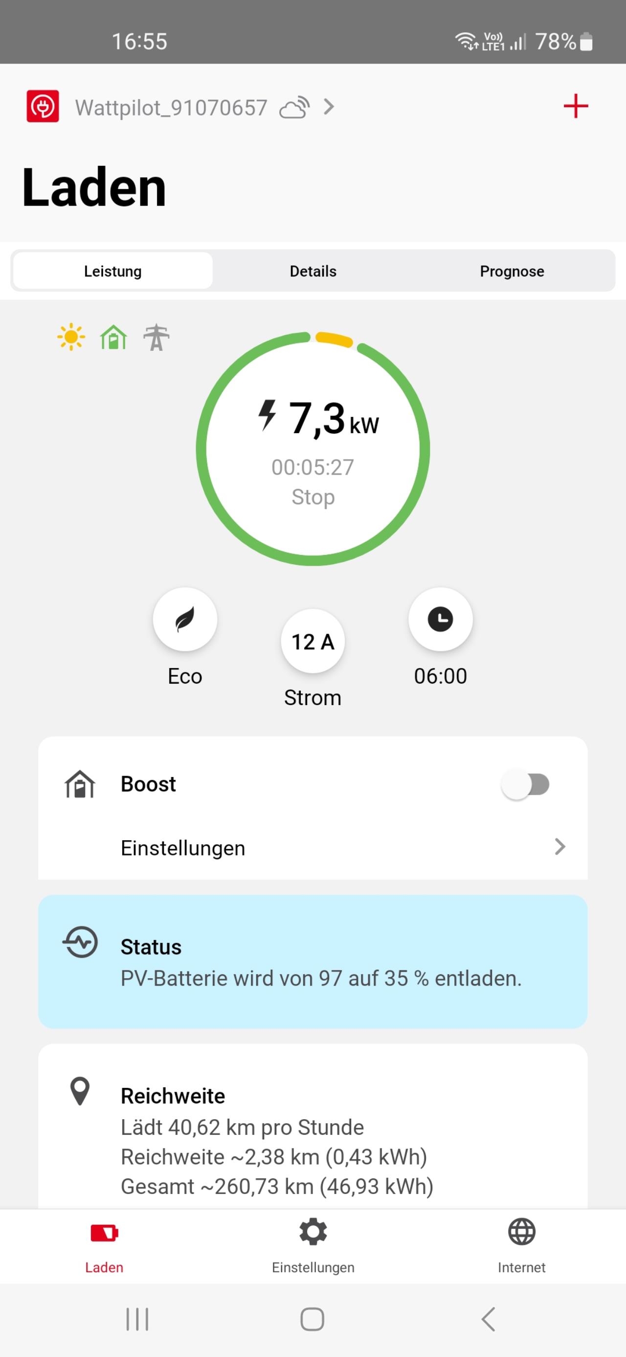 Mahlzeit, Ich werds amal mit Bordmitteln versuchen und wenn es mich zu sehr stört, spiel ich mich mit evcc Danke für den Tip! LG |