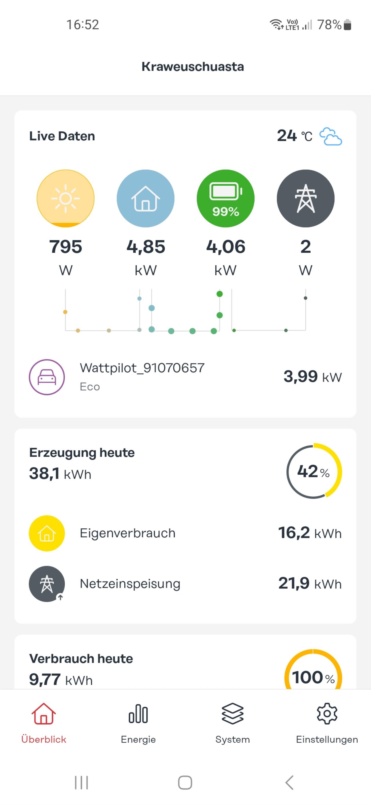 Ich werds amal mit Bordmitteln versuchen und wenn es mich zu sehr stört, spiel ich mich mit evcc