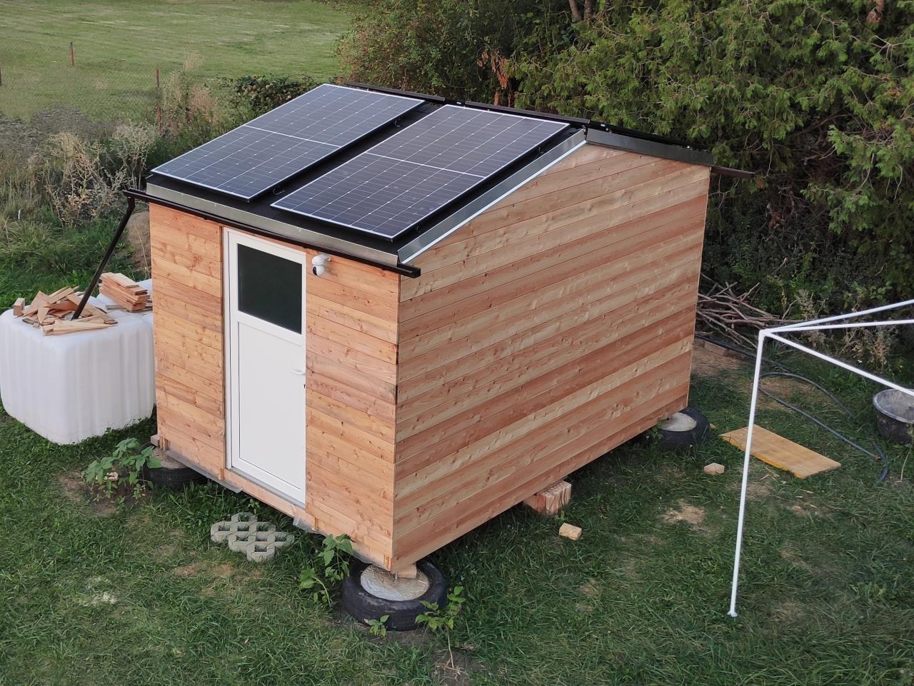 Zerlegen ist leider keine Option. Alles fix miteinander verbunden, samt Dämmung und Elektroinstallation. So sieht sie aus: 3,8m lang, 2,5m breit und knapp unter 3m hoch |