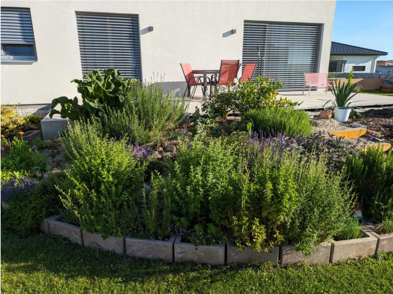 Wir haben südseitig den Kräutergarten angelegt. Ich glaub das Bild zeigt ganz gut, wie es den Pflanzen dort geht: |