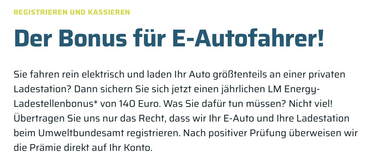 Vielleicht unglücklich ganz unten beschrieben mit Bankkonto überwiesen, aber es steht eher 2 x Bonus (Ladestellenbonus bzw auch 140EUR/1500kWh) - Indiziell würd ich sagen du bekommst einen Ladebonus bei deren Tankstellen weil sonst würdest ja nicht schreiben kWh)