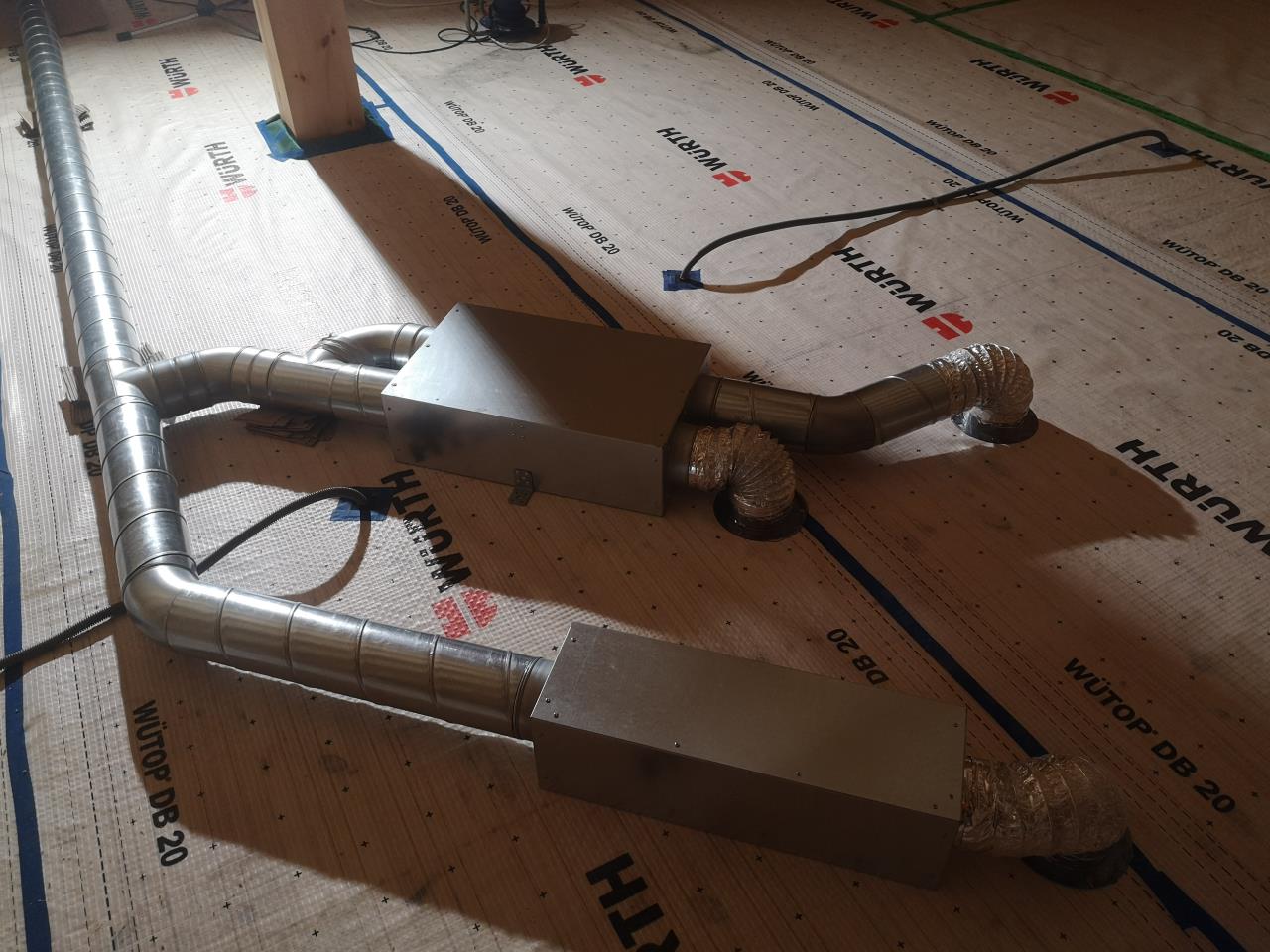 Bin zwar kein Lüftungsspezialist aber wenn das bei mir so aussehen würde baut der das wieder ab. Sieht aus wie fette Elektroleitung lieblos und Sinnlos reingeworfen. Und ich kann mir nicht vorstellen dass diese Mineralwolleteile so tolle Querschnitte haben wenn wie so gebogen werden. Sieht aus wie installation für Laien die es nicht besser wussten. Auch die Ich nenns mal Schalldämpfer zu den einzelnen Anschlüssen, echt lieblos und sicher erfüllt das so nicht den Sinn. Gerade wie bei euch wenn ich schon auf Schall achten muss |