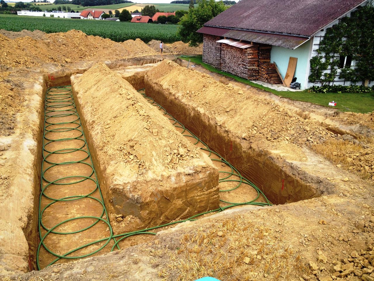 Hier gehts los im 1m Graben ein Rohr links das andere rechts |