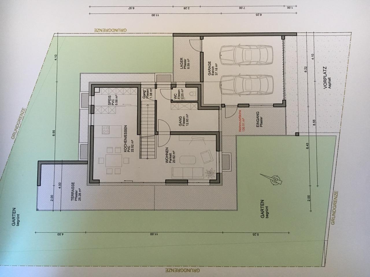schnitt gelände - und hier der exakte Schnitt vom Architekten. Ist mehr aufzuschütten als ich dachte, teilweise 1m. Da gäbe es dann weniger Arbeit für den Bagger