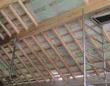 Etwa die Hälfte. Es sind nicht alle Räume nach oben offen. Wäre viel einfacher. Wir hatten den richtigen Abstand zwischen den Sparren von 62,5 cm für die Trockenbauplatten. Sonst wird es noch aufwändiger. Insgesamt Dämmstoffe 30 cm (24 cm Mineralwolle, 6 cm Holzfaser). Wirksam ist auch noch die knapp 5 cm Installationsebene. Nur im Bad. |