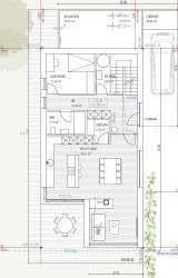 - ohne "Einkerbung" - das Haus ist hier 14x7,8. Die Küche ist hier oft frequentiert, eher loftartig, viel Fenster, weniger Stauraum.
