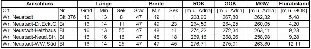 Ja, im besten Fall noch in Fließrichtung. Also in Fließrichtung zuerst der Entnahmebrunnen, dann mind. 15m Abstand und dann erst Schluckbrunnen. Sehr individuell, abhängig von Bohrfirma, Ausgestaltung Schluckbrunnen (Sickerschacht oder "richtiger" Brunnen), Modell WP WP [Wärmepumpe], Brunnenpumpe usw usf. Grob überschlagen würd ich die Kosten mit rd. € 25.000,- beziffern, wennst selber ned allzuviel machen willst. ROK = RohrOberKante, der obere Abschluß der Sonde. Von dort aus wird der Wasserstand gemessen. GOK = GeländeOberKante, angrenzendes Niveau. MGW = Mittlerer GrundWasserstand (würde ich mal raten...)! Die Sonde BLT376 messen wir auch, dort hab ich seit 2012 Aufzeichnungen. Und die angegebenen 262,30 ü.A. wären halt der mittlere Grundwasserstand entspr. unseren Messungen