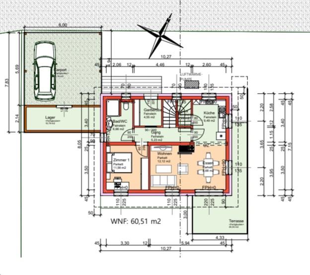 Wir haben Hanglage, deswegen wären die Schlafzimmer im Untergeschoss, oben Wohn-Essbereich mit Eingang.