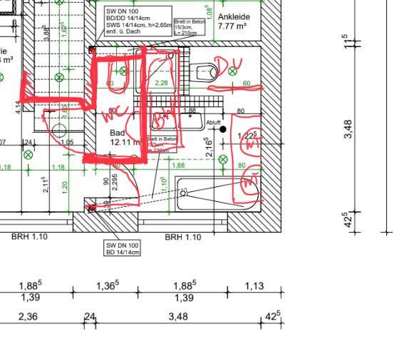 ich benötige Euer Input um das Bad noch zu optimieren. Aktuell gefällt uns nicht dass wir mit dem Rücken an einem Südfenster bei den Waschbecken sind. Ich kann mir die Gegenlichtsituation nicht wirklich als "optimal" vorstellen oder hat es jemand so geplant und kann dem was positives abgewinnen ? Evtl. gibt es eine Anordnung ohne T-Lösung oder jemand hat einen Vorschlag wie es praktikabler wird. Norden ist auf dem Plan oben. Danke im Voraus und falls Infos fehlen gerne melden 😀