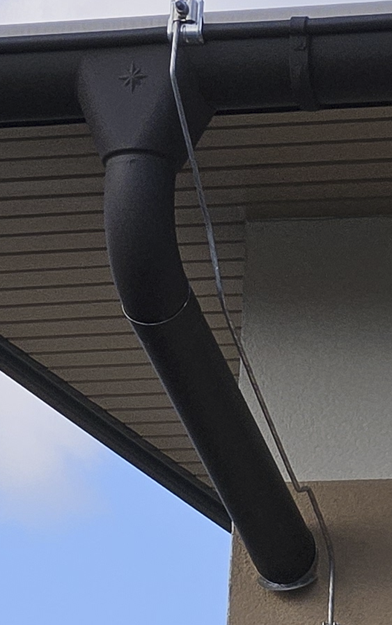 Habe eine Frage zur Regenrinne, mir ist bei einem Holzriegelhaus folgendes aufgefallen: