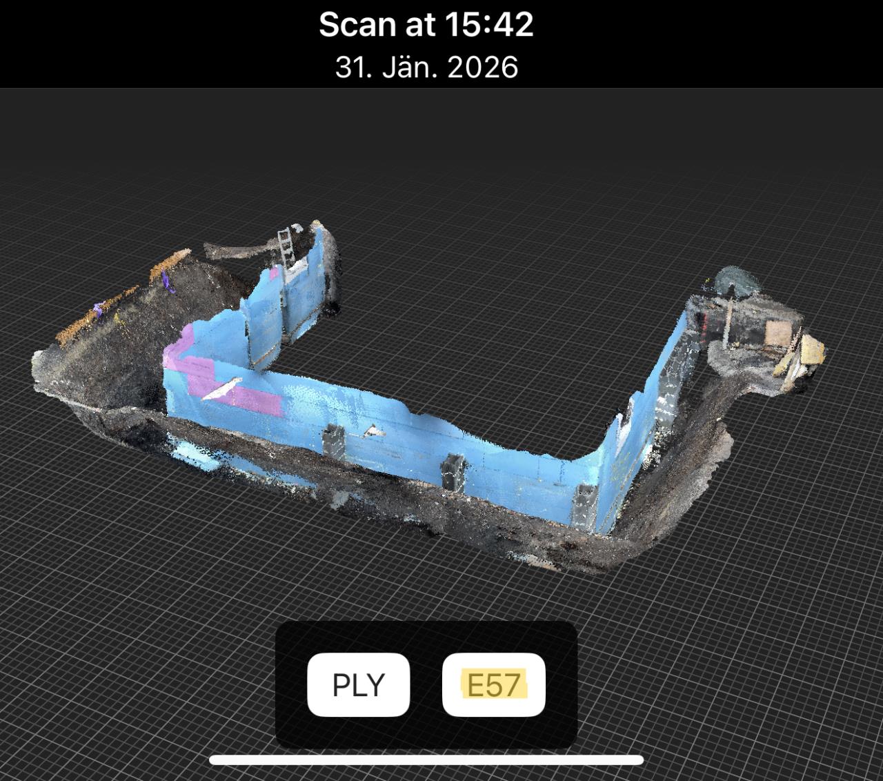 2. Teil - Auswertung ~10 Minuten Ich exportiere im format .e57 auf den PC. (für den Transfer zwischen PC und iOS kann ich "localSend" nur sehr empfehlen!