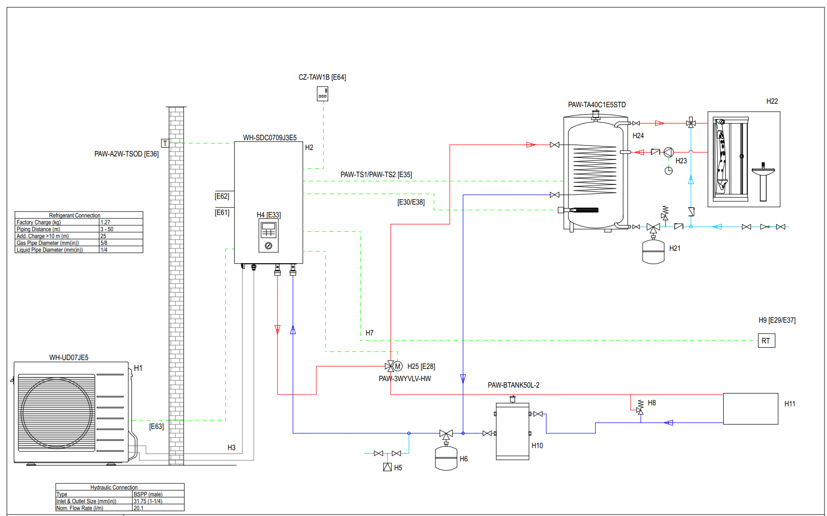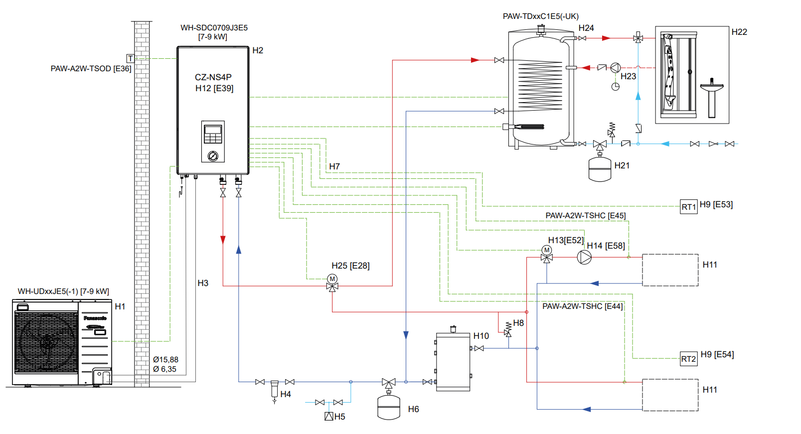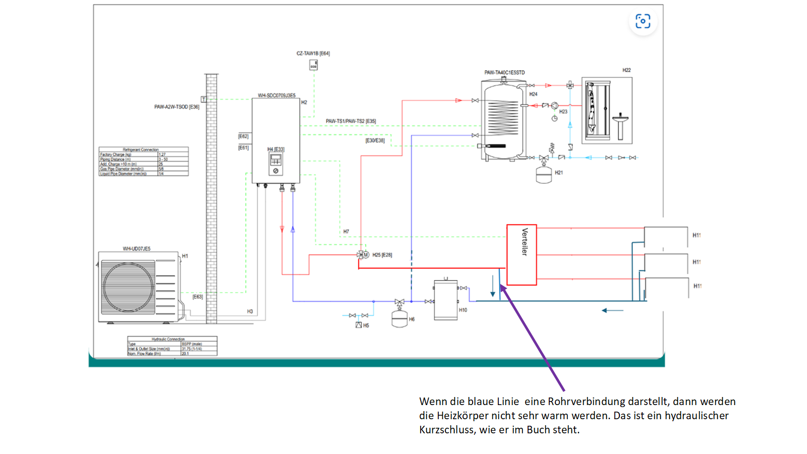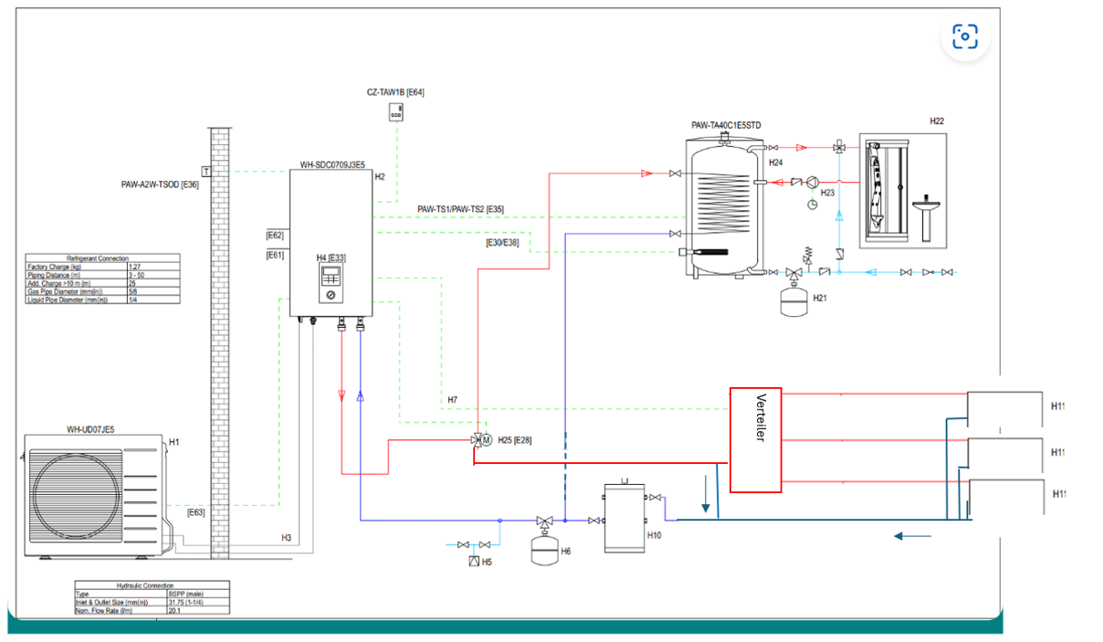 Leg dem Inst die Beschreibung noch dazu. Überströmer (H8) würde ich je nach Durchflussmenge noch einbauen. Drei Wege Ventil würde ich von ESBE nehmen und nicht das von Panasonic vorgeschlagene und natürlich die Zirku weglassen.