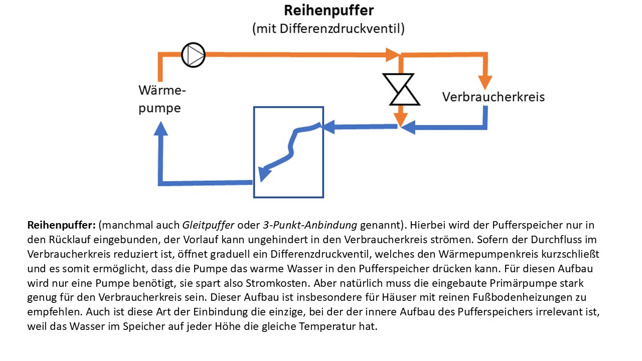 1) Ich habe zur Vollständigkeit die beiden Möglichkeiten präsentiert. Bei  WP mit kleiner Leistung  wird  die Serienschaltung des Puffers  mit den Differenzdruckventil  gemacht.