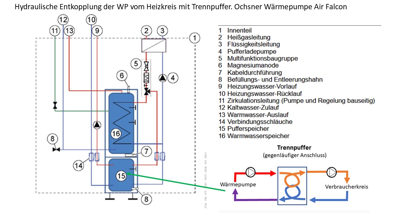 Kleinermuk schrieb: Gute WP WP [Wärmepumpe]-Hersteller, wie z.B. Ochsner mit der Air Falcon gehen noch einen Schritt weiter und betreiben den Pufferspeicher als Trennspeicher😉😊. Damit ist die WP WP [Wärmepumpe] zu 100% vom Heizkreis entkoppelt (Kannst bei der Panasonic mit dem PAW-BTANK100L auch machen). Nachteil dieser Anbindung ist halt, dass man im Heizkreis eine böse UWP bentötigt😊.  Es gibt halt im Leben keine Lösung, die nur Vorteile hat.