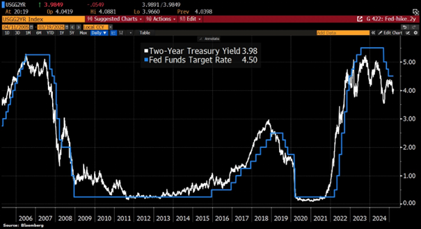 Das FED erwartet beginnend mit September derzeit zwei Zinssenkungen für 2025: